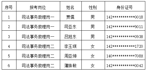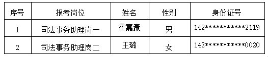 忻州市定襄縣人民法院司法事務助理招聘擬錄用人員及儲備人員公示